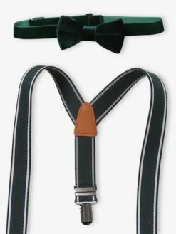 Noeud Papillon En Velours Et Bretelles Garçon Vert Anglais – Vertbaudet