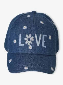 Casquette Fille « love » En Denim Brodé Bleu Jean – Vertbaudet
