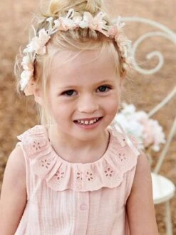 Ensemble Serre-tête + Choucou Broderie Anglaise Fille Bleu Jean – Vertbaudet