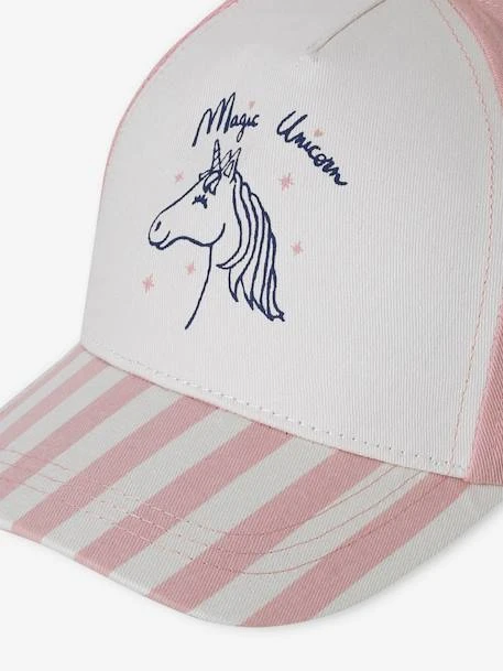 Une adorable licorne s’affiche sur cette casquette girly ! Avec son imprimé « magique » et sa visière rayée, cette casquette accompagnera votre petite fille tout l’été…
