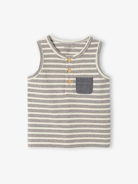 L’incontournable débardeur rayé se renouvelle avec une rayure graphique et un poche chambray, le mix and match est parfait pour créer des petits looks d’été.