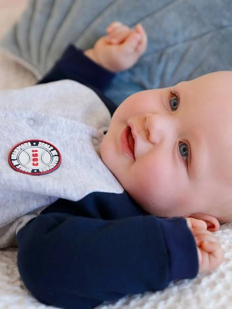 Dors-bien bébé garçon pressionné devant en molleton 80% coton, 20% polyester.