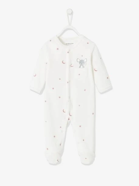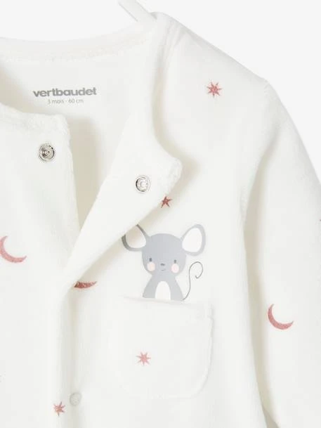 Douceur, ouverture devant pour un habillage facilité et motif craquant, ce dors-bien en velours est parfait pour le trousseau de maternité.