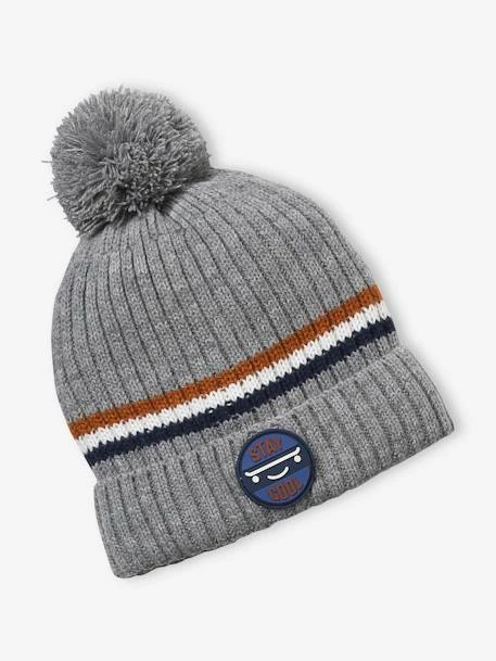 - Bonnet en maille côtelée avec bandes contrastantes