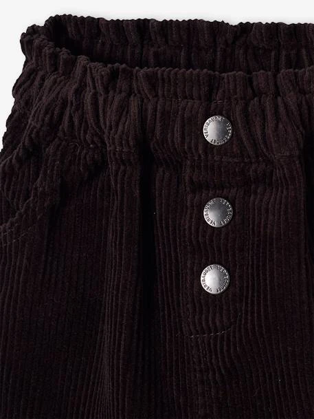 Relooking de l’indispensable jupe en velours… Une taille « paperbag » un peu plus haute et froncée, un velours côtelé et des boutons en métal. Cette jupe est la pièce indispensable du vestiaire automnal, à porter avec un sweat ou une blouse pour un style plus bohème.