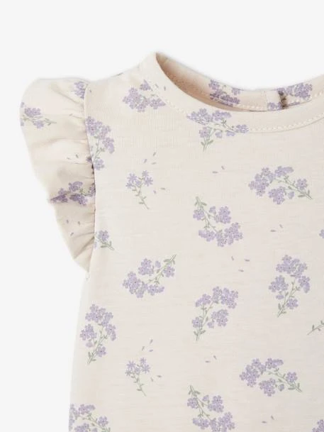 Un col en broderie anglaise sur un T-shirt uni + un T-shirt volanté au délicat imprimé, un beau duo à offrir pour des petites filles romantiques.