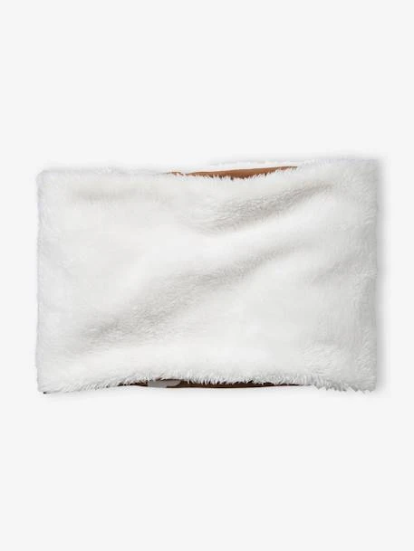 Snood fille réversible : face en maille 100% coton, face en fausse fourrure 100% polyester.