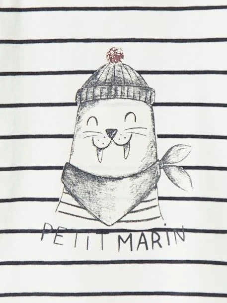 Sous-pull rayé bébé « petit marin » 95% coton, 5% élasthanne. Compo gris chiné : 66% coton, 30% viscose, 5% élasthanne.