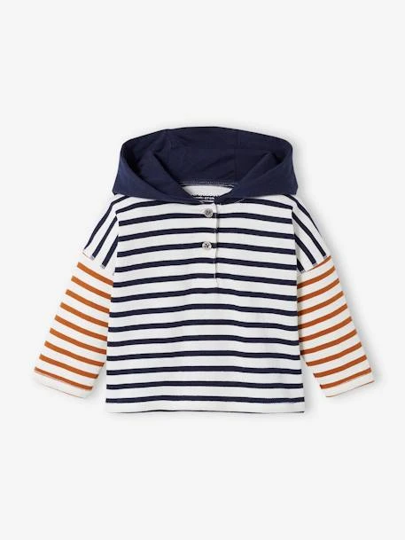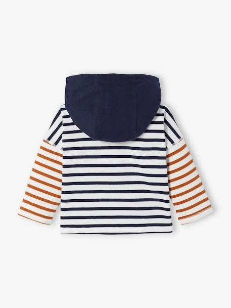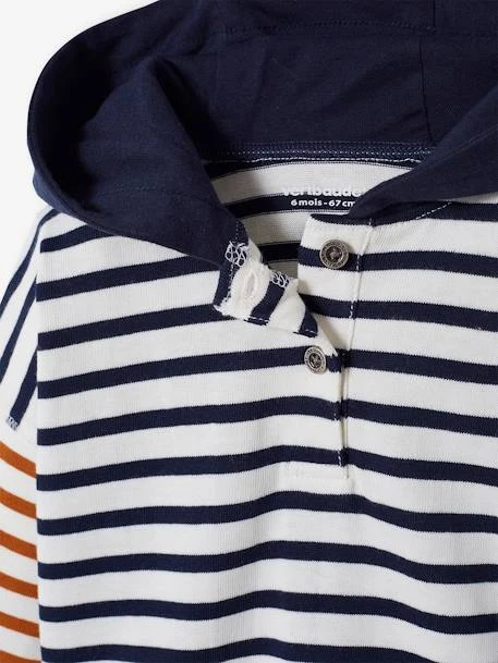 Il a tous les atouts : rayure intemporelle, coupe confort… Et en bonus, sa capuche qui lui donne un petit look sweat avec la souplesse d’un T-shirt.
